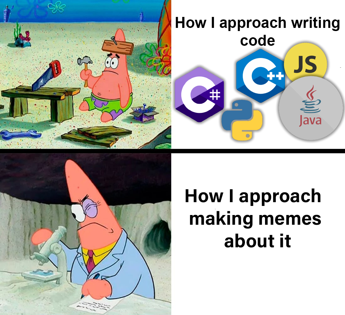 C# (C-Sharp): where Java developers go when they're tired of typing so many semicolons. These memes celebrate Microsoft's flagship programming language that powers everything from enterprise applications to indie games. If you've ever created more interfaces than implementations, experienced the evolution from .NET Framework to .NET Core to just .NET, or explained to management why WPF is different from WinForms is different from MAUI, you'll find your digital community here. From LINQ queries that read like poetry to the special satisfaction of Visual Studio's intellisense completing exactly what you wanted, this collection honors the language that somehow manages to be both corporate and cool.