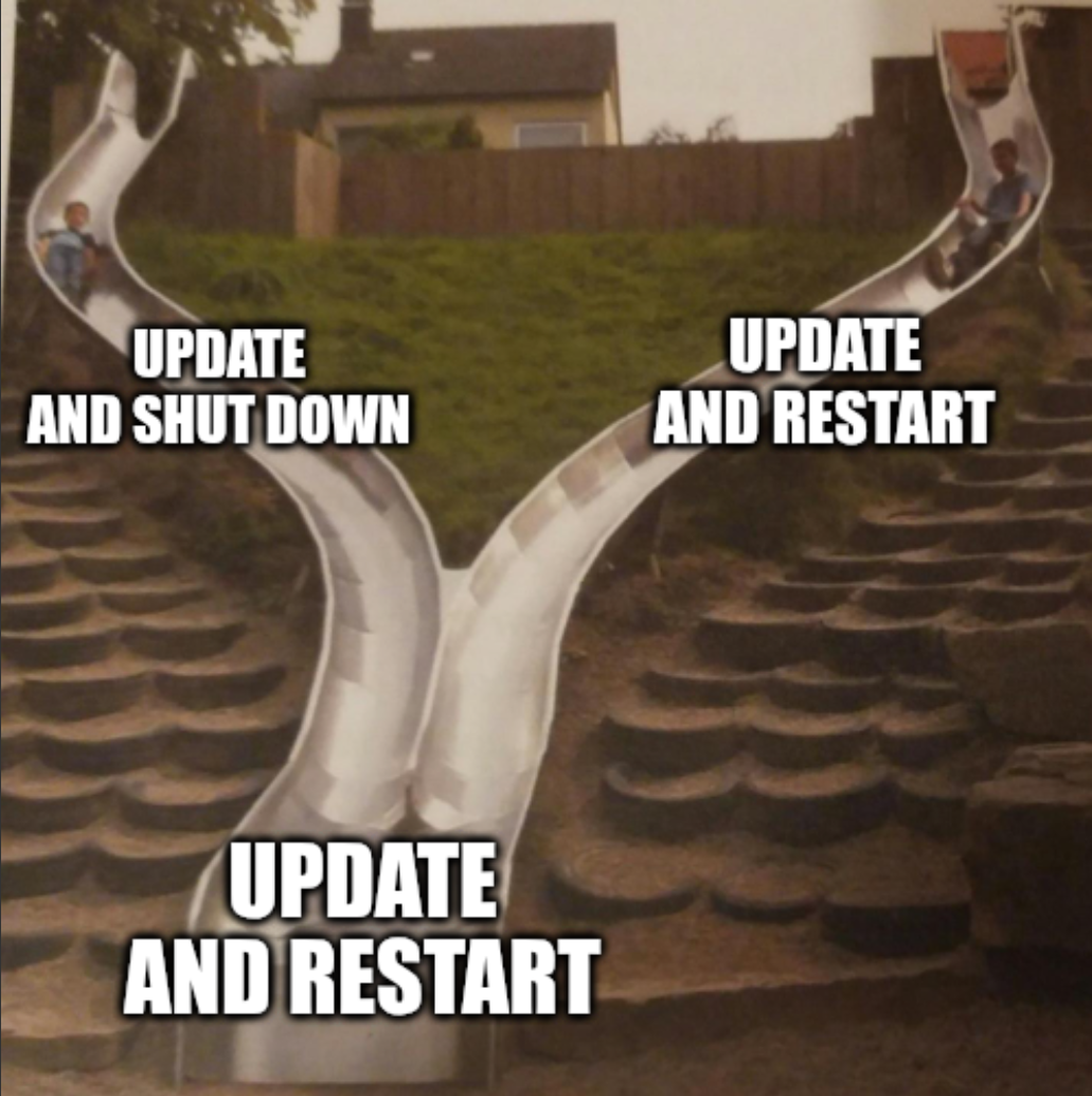 The Grim Reaper comes for us all, even operating systems. Windows 10 is being led to the afterlife, asking if it was a good OS. Death's brutal honesty—"MEH, BUT BETTER THAN 8"—is the software equivalent of "you weren't terrible, just aggressively mediocre." Microsoft's cycle of creating a disaster (Windows 8), following it with something less awful (Windows 10), then forcing everyone to upgrade again (Windows 11) is the tech industry's version of planned obsolescence. Pour one out for the OS that spent years desperately trying to convince you that Edge was a real browser.